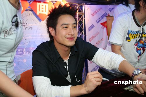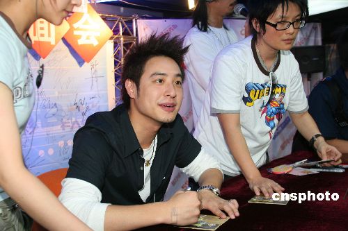 7月19日下午,台湾歌手潘玮柏在北京王府井FAB音像店举行新专辑《反转地球》的专辑签售会。中新社发 李伯男 摄