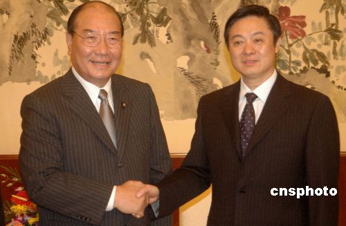 六月二十八日,第二届桂台经贸交流会在南宁开幕。中共广西壮族自治区委员会副书记刘奇葆会见率团参会的中国国民党中常委洪玉钦。中新社发 蒋雪林 摄