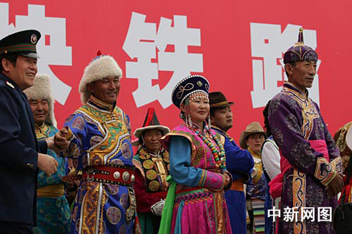 七月一日上午,青藏铁路通车庆典在青海格尔木火车站南广场举行。图为通车庆典会场。中新社记者 武仲林 摄