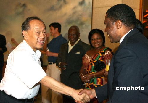 七月八日晚,中国外交部部长李肇星在北京与非洲十国驻华使节举行联谊晚会。中新社发 廖文静 摄