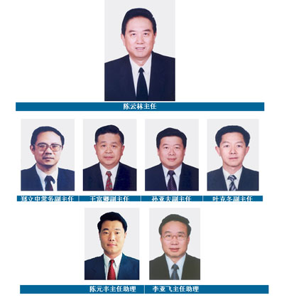 经过此番调整后,国台办形成“一正四副两助理”的领导层格局,主任是陈云林,四位副主任分别是郑立中、王富卿、孙亚夫、叶克冬,两位主任助理分别是陈元丰、李亚飞。