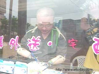 中新网8月14日电 桃园县最近出现一个超级热门的槟榔摊,生意兴隆,不是因为有性感的槟榔西施,而是一名双手被截肢装上铁钩义肢的男老板,他靠着开朗的笑容和灵活的铁钩,吸引不少红唇族上门,让一旁的槟榔西施也感叹,真是“双峰”不敌双钩。