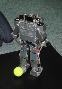 淡江大学电机工程系翁庆昌教授表示,若要机器人踢足球,就要能让它自己找球,找到球后移动到一个适当的位置,再来取角、射门。淡江研究团队的足球机器人,已经于今年在德国举办的“2006FIRA世界杯机器人足球赛”中,获得视觉全自主机器人组的冠军,还有人型机器人组的季军。