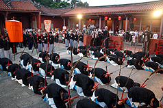 晨五时,曙光乍现,祭孔仪式开始,由市长许添财担任正献官,忠义小学的学生在大成殿前跳六佾舞,校方准备三名后补学生,在祭孔仪式结束前全都上场递补。