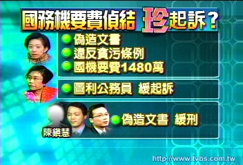 据称“国务机要费案”,台北“地检署”3日侦结,根据陈瑞仁检察官的调查,陈水扁与吴淑珍共犯贪污治罪条例的“利用职务上之机会诈取财物罪”,总共假藉“国务费”核销机会,从2002年7月到2006年3月,连续诈取新台币1480万408元。