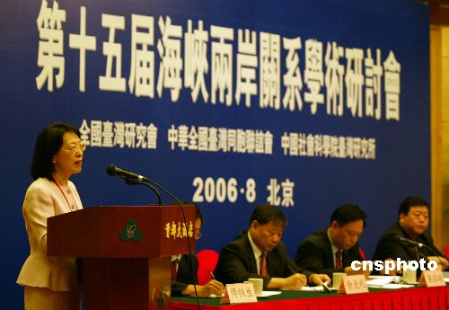 八月九日,第十五届海峡两岸关系学术研讨会在北京举行,来自海峡两岸的近百位学者出席了会议。中新社发 任海霞 摄