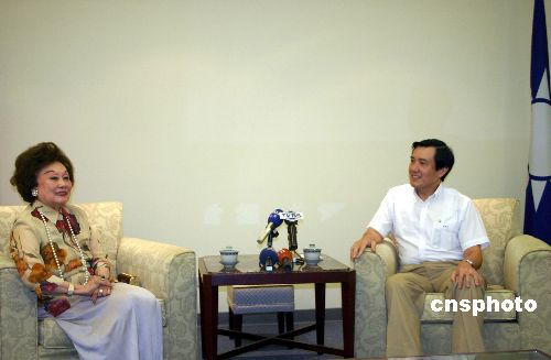 中国国民党主席马英九八月十五日下午在中央党部会见前来台湾参加陈纳德将军纪念活动的陈香梅女士。中新社发 耿军 摄