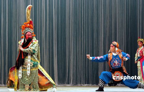 上海京剧院著名大武生奚中路八月二十一日在台北为《长坂坡·汉津口》作最后彩排。来自北京的中国京剧院会同上海、大连各地名角的“名角名剧大汇演”二十二日起将在台北的戏剧院登场。中新社发 刘舒凌 摄