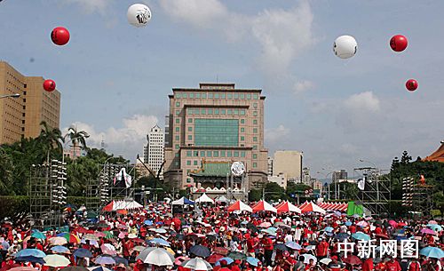图为数以万计的台湾民众在9日下午冒着烈日到场。作者:董会峰