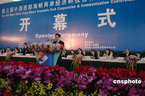 第三届中国西部海峡两岸经济科技合作交流暨食品医药博览会九月十六日上午在成都温江隆重开幕,本届科博会以两岸交流与产业互动为主题,是迄今为止中西部涉台经贸活动中内容最丰富的一次盛会。中国国民党副主席江丙坤出席,他在致辞中表示,近年来大陆对台湾的成长提供了很大的助力,台湾企业在大陆发展得很好,希望台商能够为推动两岸经贸交流作出更大贡献。中新社发 鲁彦 摄