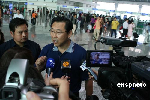 在台湾遇车祸伤亡者家属于十月四日上午从大连启程赴台处理后事。中新社发 沈殿成 摄