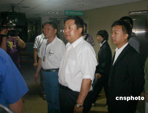 十月五日凌晨三时左右,刚抵达南投的大连市游客亲属团代表,到竹山秀传医院探望在二日南投车祸中受伤的亲属。中新社发 林国瑞 摄