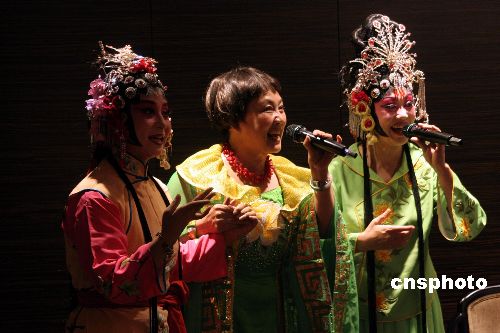 由评剧名角刘秀容领衔,七位荣获大陆戏曲界最高荣誉“梅花奖”的戏曲名家率领的“梅花神韵——中华梅花戏曲艺术团”一行二十一人,应中华基金会邀请抵台,开始为期十天的表演及经验座谈交流。中新社发 邢利宇 摄