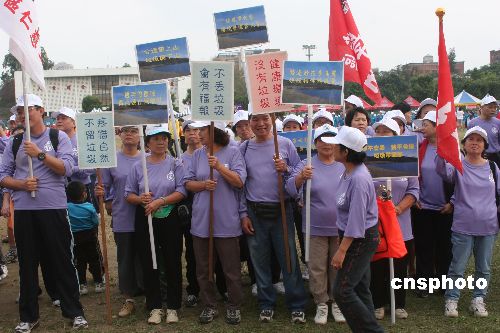 十一月十九日,五千多名台北环保义工在台湾大学体育场举办活动,宣导环保理念,号召市民为塑造清洁、亮丽的台北市自觉奉献。中新社发 耿军 摄