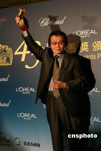 第四十三届金马奖十一月二十五日晚间在台北举行颁奖典礼,台湾影人陈子福以其在电影界的长期奉献,特别是其在绘制电影海报方面的卓越成就,获得组委会颁发的金马特别奖。中新社发 徐长安 摄