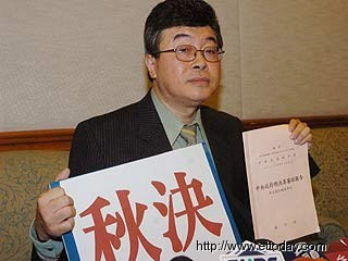 邱毅表示,将给陈水扁一个月的时间,如果到9月9日阿扁还不认错下台,将发起“秋决”行动。邱毅表示,“秋决”不代表有形斩首,而是人民对一个贪腐,还不断地遮掩、甚至采乌贼战术企图脱困这些丑陋行为的反抗,陈水扁必须负起应负的责任。