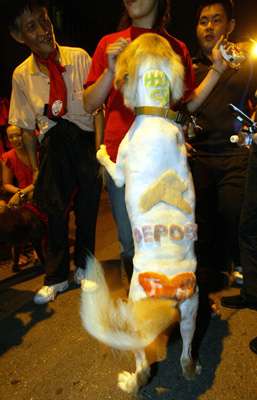 一些还不想回家的家庭主妇们占据了最接近舞台的位置,群情激昂地喊着,“阿扁不下台,就不回家煮饭了!”为了长期抗战,广场群众自动自发“接力倒扁”;不达目的,恐怕难有“退场机制”。