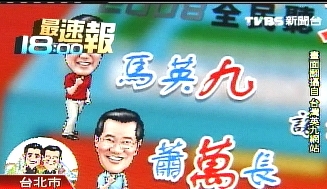 影片配音又说:“2008全民听九万,马英九、萧万长让您久等了!”