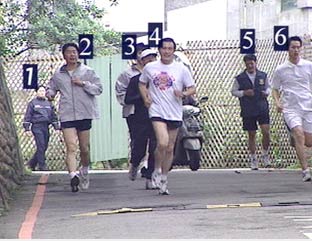 马英九跑步锻炼,现在维安层级提升,最少有六名随护陪着跑。(图:台湾东森新闻)