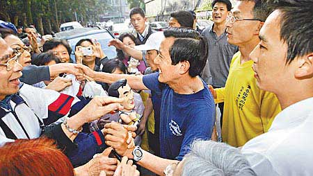 据台湾《苹果日报》报道,昨天清晨4时不到,逾20名马迷已在马家大门口守候,准备向出门跑步的马英九要签名及握手。上午7时30分,马英九跑完步回家照例向等候的马迷致意,一开始场面还算平和,没想到群众太过热情,先是有人插队,加上有人向前挤着要签名,海报、报纸挡住了特勤人员视线,还有人被挤得跌倒,场面混乱到连特勤人员都挡不住,维安队形几乎被冲散。