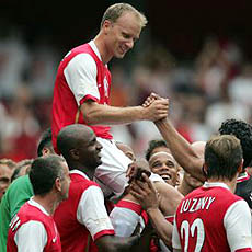 在英超阿森纳俱乐部的官方网站上,一张11年前的旧照片最近一直被挂在显眼的位置——1995年8月,荷兰“冰王子”博格坎普笑容可掬地接过红衫白袖的10号队服——随后,博格坎普跟着法国人温格,在阿森纳效力了11年,奉献了多个令人震惊的美妙进球。
