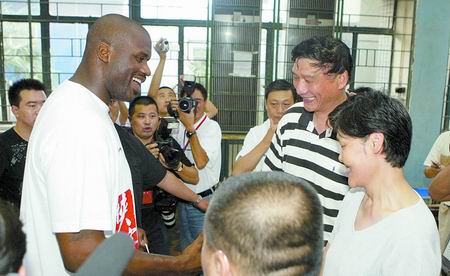 篮球馆内异常闷热,奥尼尔不停地用毛巾擦汗。在主办方的安排下,奥尼尔见到了姚明父母,并得到一本介绍上海的书作为礼物,“我看了,我很喜欢。”奥尼尔曾经说过“姚明的父母就是我的父母”,显然这勾起了“大鲨鱼”对于姚明的思念,“我很想念姚,我知道他现在在日本打比赛,不过他已经答应我,明年等我再来的时候,会以私人名义带我游览上海。”此次中国行让奥尼尔非常高兴,他已经许诺,明年夏天还要来,而且是带着家人一起来。