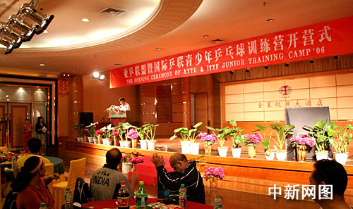 中新网石家庄八月二十一日电 (记者 牛琳)二十一日晚七时半,伴随着振奋雄壮的常山战鼓声,亚洲规模最大、水平最高的青少年训练营——二00六年亚乒联暨国际乒联青少年训练营在河北正定正式开营。