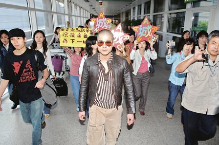 出席完庆功宴后,郭富城只休息两小时即飞返香港,出席签唱会及晚上的《父子》宣传活动。昨晨9时10分,戴上墨镜的郭富城步出机场,获20多位歌迷接机,他们手持鲜花及写着“影帝郭富城 实力再称王”的横额,一见偶像即大声欢呼。下午3时,郭富城出席在apm举行的国语唱片《My Nation》签唱会,吸引1500位歌迷排队等候签名。为祝贺郭富城蝉联金马影帝,大会让他坐于24K足金宝座上,又安排两位美女送上鲜花及蛋糕,令他上眉梢。