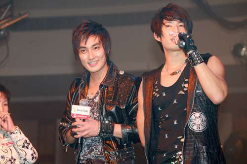 中新网7月30日电 据香港《大公报》报道,台湾歌手吴建豪(Vanness)与韩国歌手安七炫日前以组合形式,出席九龙湾国际展贸中心举行音乐会,与歌迷聚会兼大玩游戏,气氛热烈。音乐会上,Vanness与安七炫唱出新碟的五首歌曲之外,并跟歌迷玩游戏,期间有女歌迷乘机拥抱两位靓仔,安七炫显得有点尴尬。