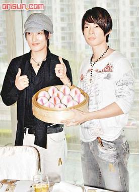 中新网8月8日电 据香港《东方日报》报道,由韩国歌手安七炫及台湾歌手吴建豪组成的KANGTA&VANNESS,推出的专辑《SCANDAL》大卖,加上昨日是吴建豪的28岁生日,唱片公司特别在红磡都会海逸酒店举行祝捷暨生日会,SONYBMG香港区董事总经理冯建强,分别送上两部金色手提电话给二人。