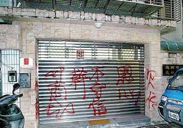 中新网9月22日电 台湾第一名模林志玲人红是非多!大前天林家位于台北杭州南路专制铝梯、铝制品的“爱而发”兴业公司,竟遭人以喷漆在门口铁门留下“奸商”、“黑心”“干”、“欠债”等文字,让附近邻居深感震惊!