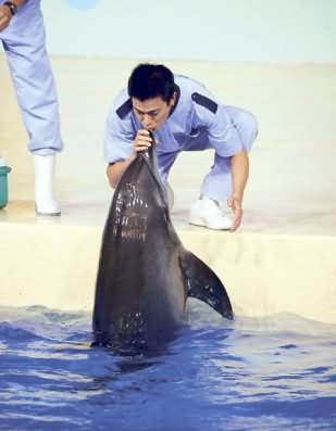 据香港《明报》报道,这次华仔获海洋公园赠送一套动物训练师制服及金哨子,并将他列入VIP训练员,随时欢迎他探望海豚、海狮。他指导海豚时,获其中一条海豚送上第一个Birthday Kiss,他笑说海豚送了一个咸咸地的湿吻给他,感觉好温馨!
