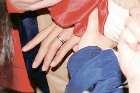 另一边厢的霆锋昨早由内地返抵香港机场,甫出闸即被约30名记者包围追访,戴上黑超的霆锋颈上挂着与柏芝同款的定情天珠,现场见他心情大好,笑容满面,虽然不断被追问婚讯,但他只一味笑到合不拢嘴,故意将戴着婚戒的左手插在裤袋内,边走边重复说:“出去再讲,不要阻档别的人。”