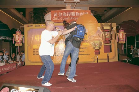 中新网10月8日电 香港女艺人官恩娜前晚出席新城电台在黄金海岸举行的《月满照佳人》中秋晚会时,遭一名上台玩游戏的男Fans箍颈强吻,由于事出突然,官恩娜被吓到花容失色,不知如何是好,泪洒当场。