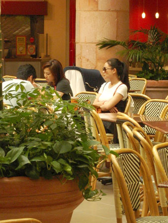 有人曾目击王菲在加州橘郡(Orange County)的大华超市购物,而日前有网友则在网络上刊登了一张在Fashion Island这个购物天堂拍到的王菲照片。据博客主人描述,他是在逛街时在一家商铺门口偶遇推着婴儿车的李亚鹏,后来他进入店内,一眼便看到戴着黑色墨镜的王菲。他随后尾随其后,拍下了一张弥足珍贵的照片,这也是王菲产后被首次曝光的照片,照片上的她头发已留长,看起来身材也恢复得不错。