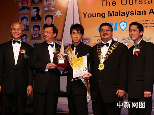 中新网11月6日电 “2006年马来西亚十大杰出青年颁奖典礼”上周六晚间(11月3日)于吉隆坡举行,重感冒缠身多时的光良因“文化成就”荣获肯定,他在父母、兄嫂、妹妹等家人陪同下抱病出席领取殊荣,成为继杨紫琼(“商业与经济成就”)与李心洁(“文化成就”)之后第三位成为大马杰青的华裔艺人,但在冠盖云集的颁奖晚宴因众人争睹风采而造成大混乱,光良则是史上第一人!