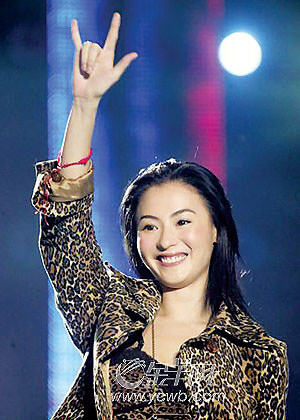 张柏芝前晚为观众们带来她的成名曲《星语心愿》,她演唱的时候用右手做出了谢霆锋标志性的“爱的手势”,引得粉丝们尖叫连连。