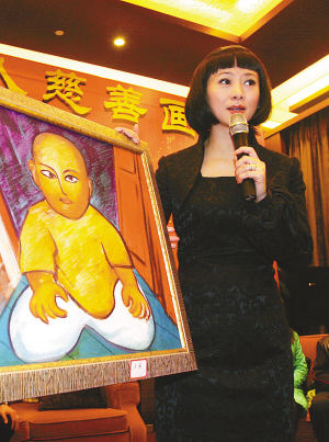 为了让作品卖出好价钱,母亲是重庆人的翁虹还熟练地用起了重庆话调动现场气氛,当一位女士成功拍下一幅作品时,翁虹开心地表示:“巴适,重庆的女人就是巴适。”据了解,刘峰的8件作品在翁虹的大力鼓吹下共拍出了5.5万元,而这笔钱也将全部捐赠给患有尿毒症的那位女性。