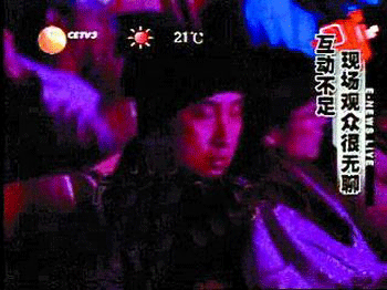 中新网10月23日电 据重庆晚报报道,张靓颖近日在京举行了首唱,由于现场意外不断,事后某电视媒体以“衣服掉了,观众睡了,人气不敌李宇春”为内容给予报道。但昨日有粉丝重温这段视频新闻却意外发现,画面里那个昏昏欲睡的“观众”,居然是李宇春新专辑的监制。此事披露后张靓颖歌迷纷纷指责唱片公司搞“无间道”,不择手段制造对手负面报道。