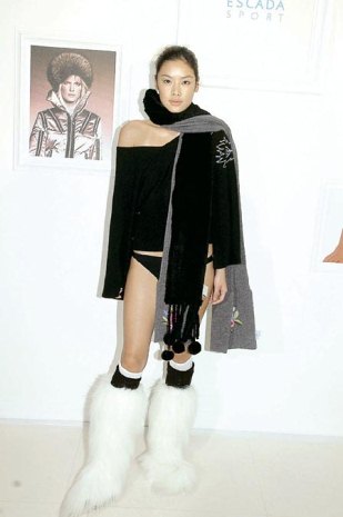 中新网9月6日电 香港模特乐基儿、Amanda Strang等昨日以比基尼泳衣打底为ESCADA SPORT示范06最新秋冬时装系列,展现外冷内热一面。