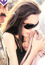 10月19日她乘坐私人飞机时,受到保镖严密保护,只见她小心翼翼紧抱已经接近五个月大的女儿,并用薄被子将爱女全身包得严严实实,但她一时疏忽,以致孩子的脸部曝光,传媒成功捕捉了这个千载难逢的机会。至于随行的保镖则为安吉丽娜抱着养女莎夏娜,布拉德·皮特因拍摄广告,所以未有同行。
