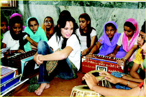 在印度浦那拍摄新片《坚强的心》将近1个月后,朱莉首度以联合国亲善大使的身份参加公益活动。上周六,休闲打扮的朱莉探访了逃亡到印度的缅甸单亲家庭。在和两位缅甸妇女见面时,其中一位羞涩地问了一句:“你看上去像演员。”而另一位则好奇地问:“你是不是电影明星?”朱莉回答说:“没错,所以我到印度拍电影,但我来到新德里就是来看你们的。我很高兴能见到你们,你们是了不起的女性。”