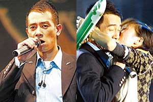 中新网11月14日电 陈小春前晚举办了“冰纯嘉士伯音乐释放Live”歌友会上,遭大胆女歌迷“狠狠”地在脸颊上吻了两下。