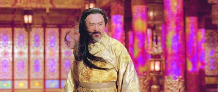 周杰伦是影片最“神秘”的一个角色,预告片中,皇后带领三名王子走上宫殿参拜皇上,只见巩俐为首的四人与周润发之间却有一种一触即发的紧张气氛。在随后的片断里,刘烨身穿黄色衣袍躲在武士身后,周润发则与周杰伦发生激斗,这一场打斗到底是父子间的“游戏”,还是争权夺位的斗争?而预告片中还有疑是周杰伦带领军队进攻皇宫的一幕,周董的身份看来是最大的谜。