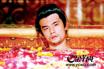 电影刚开始时,剧情讲述周杰伦饰演的二王子韩元杰被发哥派往塞外征战沙场,而这位强悍善战的大将军在中秋佳节前被召回宫与父王及母后团圆。抵达京城前,周董须在驿站梳洗一番才能进京,于是导演安排了一场洗澡的戏给周董。周董回忆起当日是在摄影棚室内拍这场出浴戏,现场连工作人员在内大概有二十几人,他忆述说:“从来没有在众人面前洗澡的经验,现场还有很多演宫女的临时演员,她们还要在你身旁走来走去,撒花瓣,所以感觉有点奇怪和尴尬!”周董说,起初他感觉很不自然,但心想自己一定要投入,浸在浴缸中,慢慢幻想自己是一个真正的王子,在享受让人服侍自己的感觉,就忘记了身边所有人的存在。当然,周杰伦为了这场戏做足了准备措施,穿平脚泳裤上阵,因此不需要担心走光。