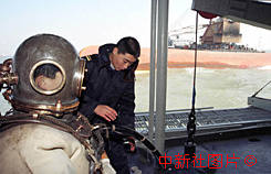 解放军海军北海舰队打捞烟台海难遇难者 ![]()