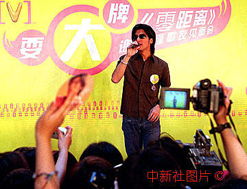 歌星谢霆锋在北京与歌迷见面。中新社记者:钱兴强