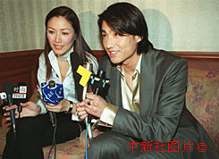 由著名模特瞿颖、胡兵、琦琦出任股东的京港合资公司--北京种星堂文化艺术交流有限公司7月15日在北京成立,图为胡兵(右)、琦琦在该公司成立仪式上接受媒体的采访。中新社记者:张勤 摄