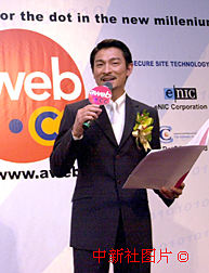 香港明星刘德华十八日出席AWEB.CC网域名称登记服务新闻发布会,并以Secure Site Technolngy有限公司主席兼代言人,宣传业务。 中新社传真洪少葵摄