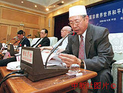 即将出访美国并出席联合国举行的“世界和平千年大会”中国宗教领袖代表团成员、中国伊斯兰教协会会长陈广元,在十六日的“中国宗教界世界和平问题研讨会”上。中新社记者 宋吉河 摄